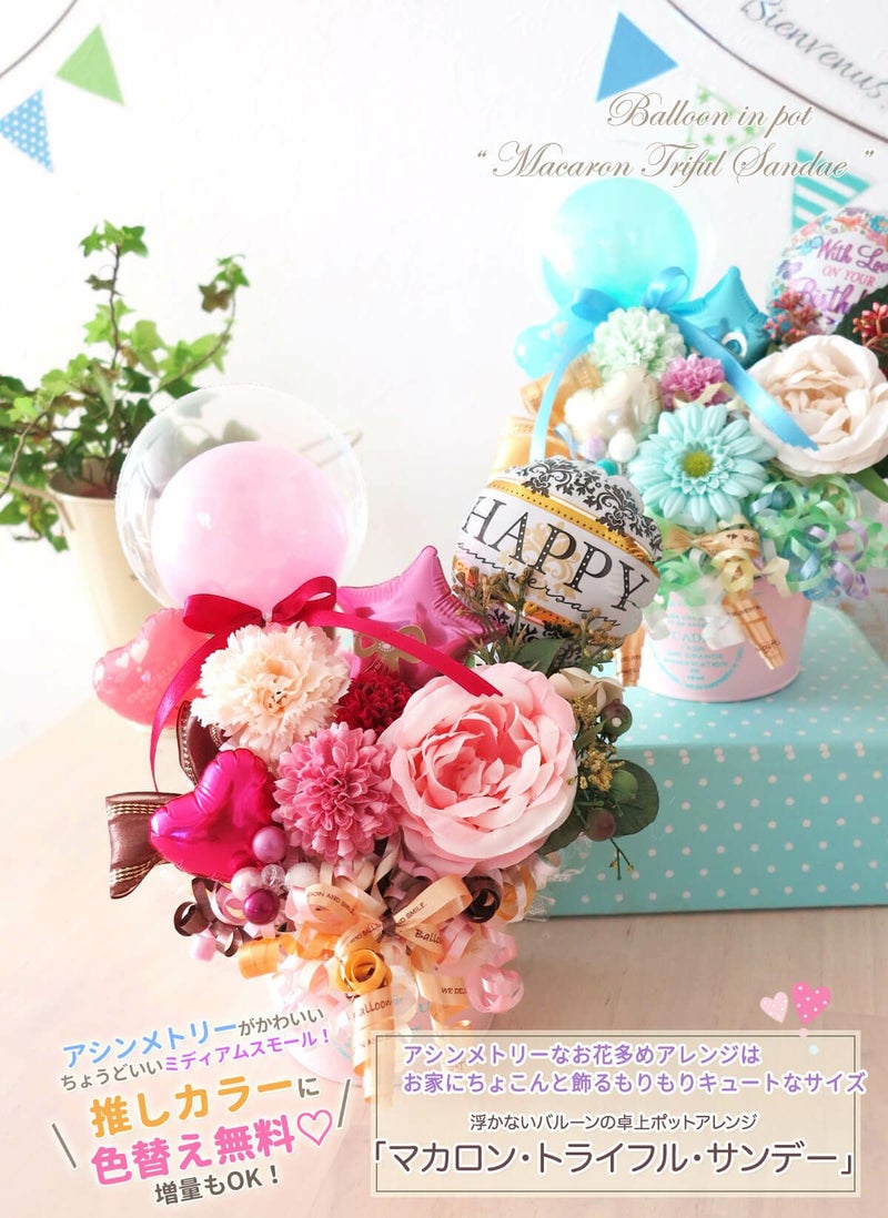 80代の叔母のお誕生日に送りました。 体調を崩していたので元気が出るように明るい感じの色使いでお願いしたところ華やかで素敵と喜んでもらえました😊 普段は写真を撮られるのが苦手な叔母ですが気に入ってもらえたみたいでバルーンと一緒に写真を撮りました。 贈った私も嬉しくなりました😊 ありがとうございました😄 また利用させていただきます。 -