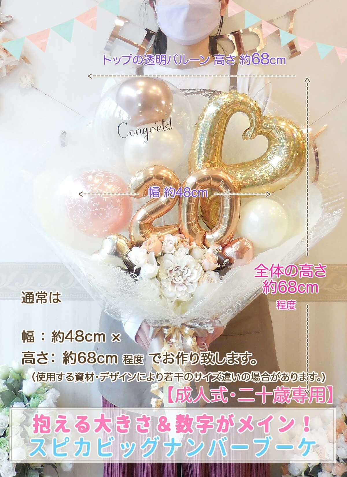 あくまでバルーンメーカーで生産されているバルーン資材をつかってアレンジをお作りしていることをご理解いただけると幸いです。