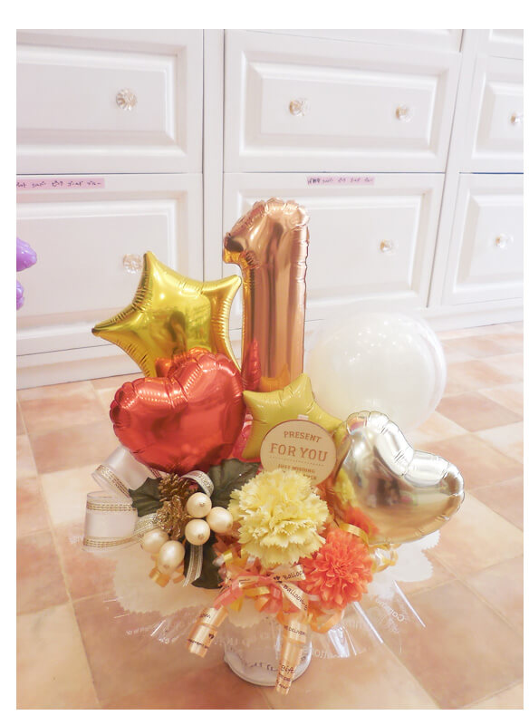 1桁なので、隣に透明バルーンを使用(無地柄無し)